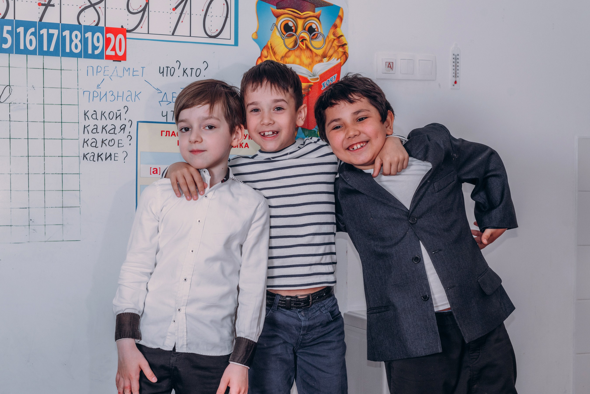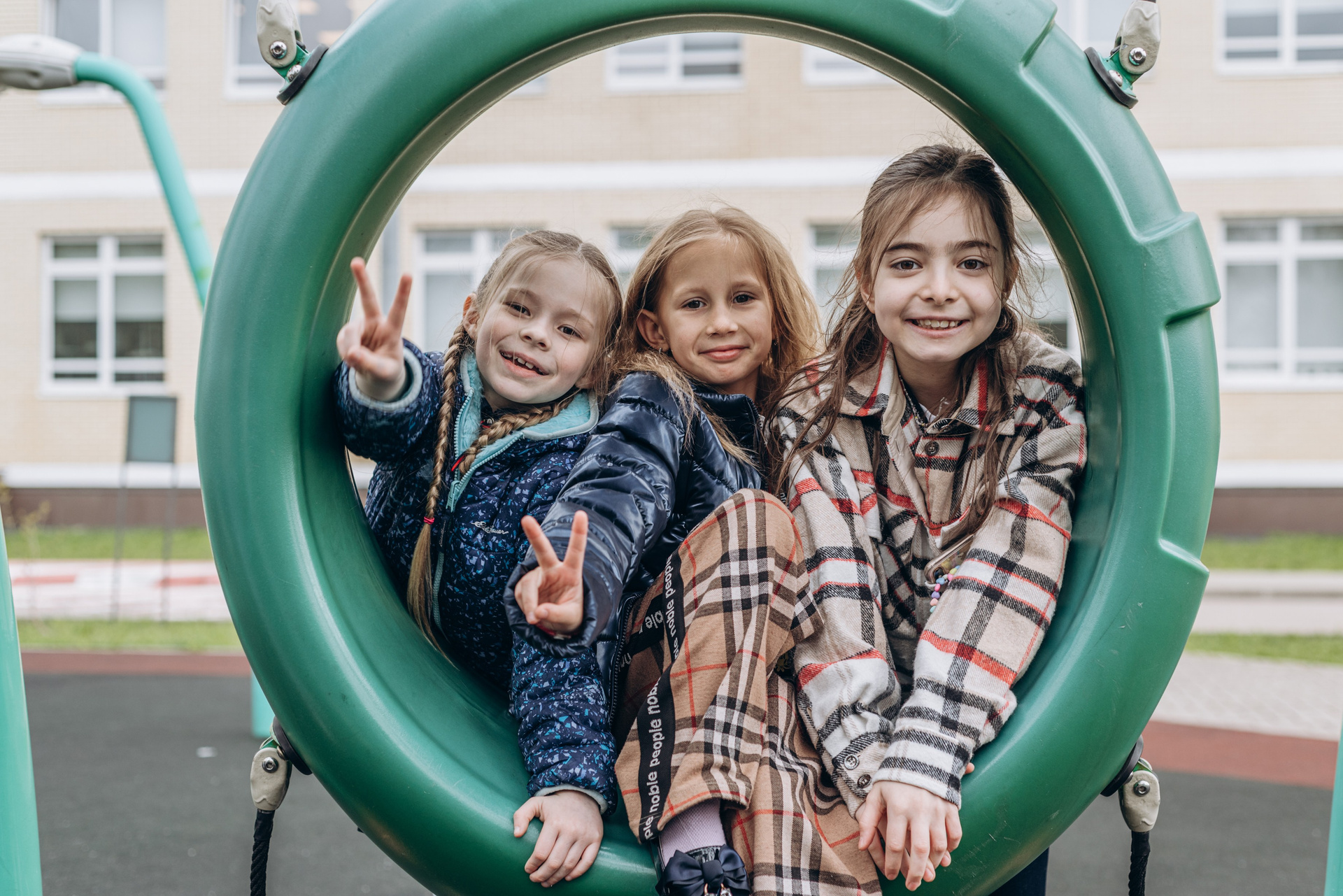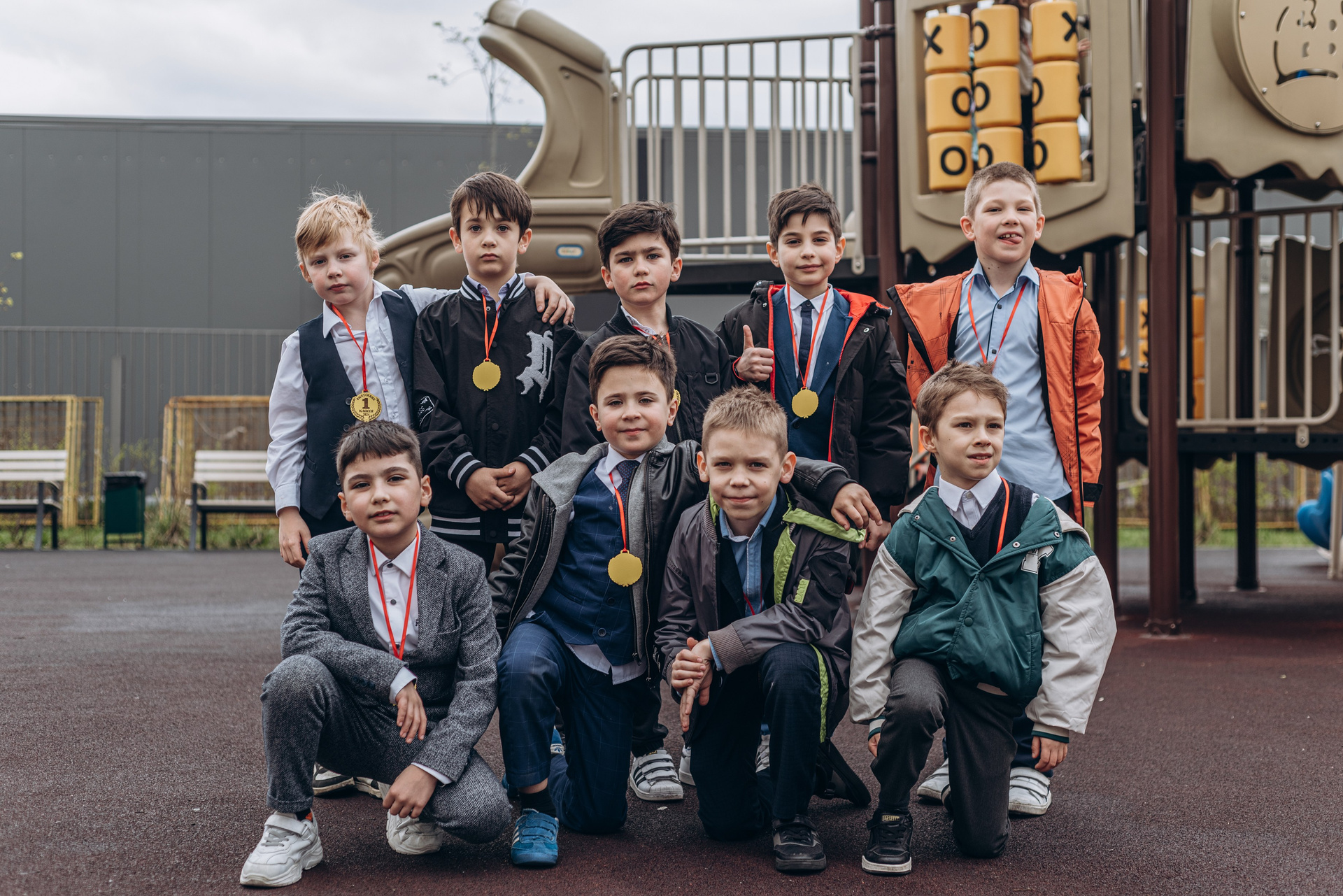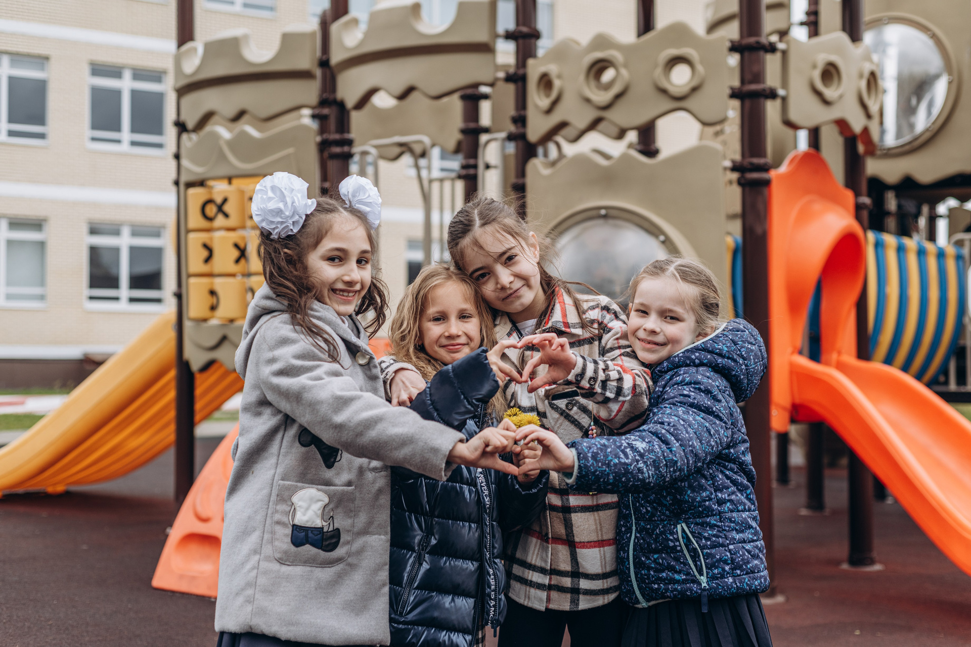 Делали два формата. В классе — уютный круг у доски, с любимой учительницей. На улице — на детской площадке, как память о первом учебном годе.